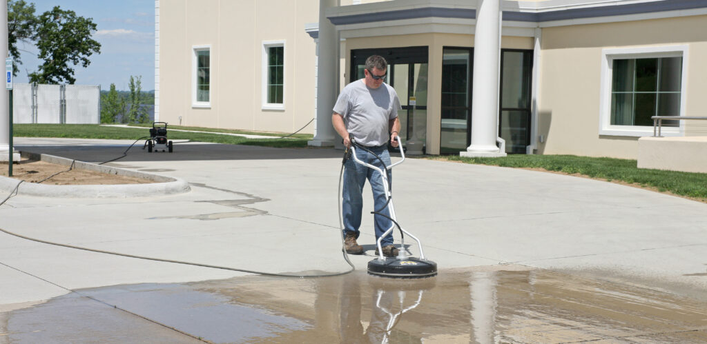 Surface: The surface also matters. For driveways and other concrete surfaces, the more powerful your pressure washer, the better the surface cleaner will perform. Keep this in mind if you are tasked with cleaning very grimy garage floors or large blacktop or concrete areas.