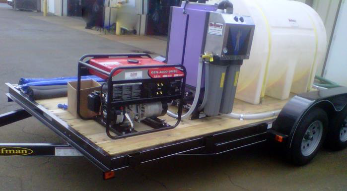 Protecting the environment from wash water runoff and complying with governmental storm drain regulations is simple, economical and effective with one of our portable recovery/filtration trailers. Our vacuum recovery and filtration systems provide up to 12gpm continuous processing of wastewater where soaps and other chemicals are not used.