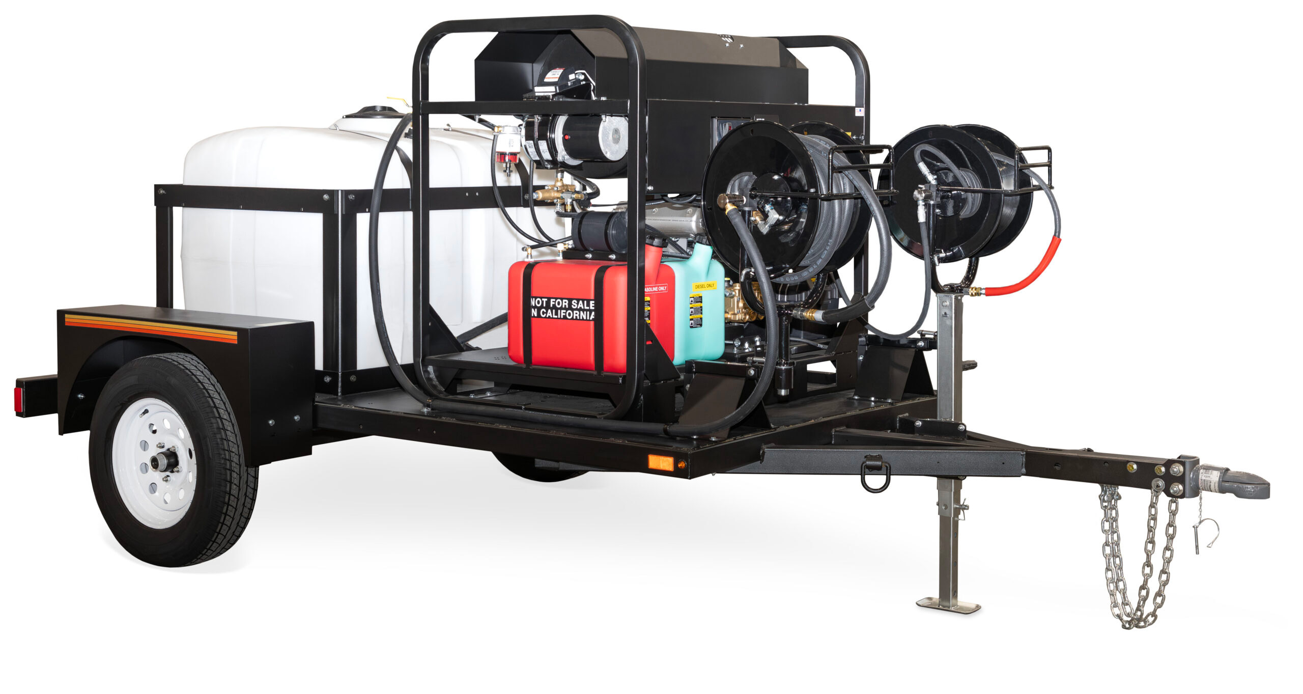 These trailers are ideal for cleaning at remote jobsites. Customize a trailer with an industrial pressure washer, hose reel and accessories to fit your job requirements.